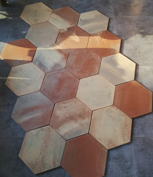 简介: 通体幻彩地砖k60w六角红窑变350mm